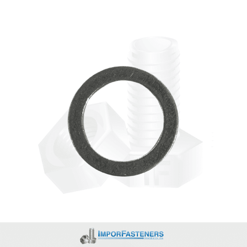 Rodela plana de aluminio según norma DIN. Ligera, resistente a la corrosión y recomendada para aplicaciones donde se requiere baja presión. Uso Automotriz.
