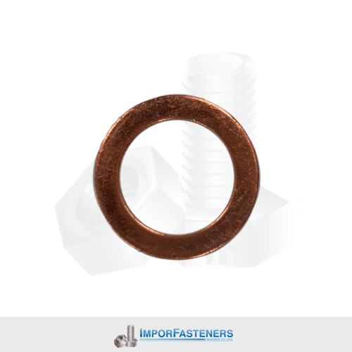 Rodela plana según norma DIN, fabricada en cobre. Ideal para sellado, conexiones eléctricas o aplicaciones que requieren alta conductividad. Uso Automotriz.