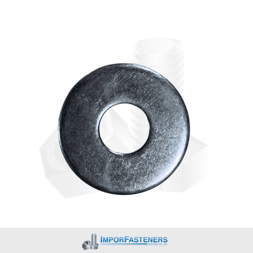 Rodela plana, diseñada para distribuir la carga de sujeción y proteger superficies en uniones con pernos o tornillos. Disponible en acabados negro (natural) o zincado, según las necesidades de protección contra la corrosión.