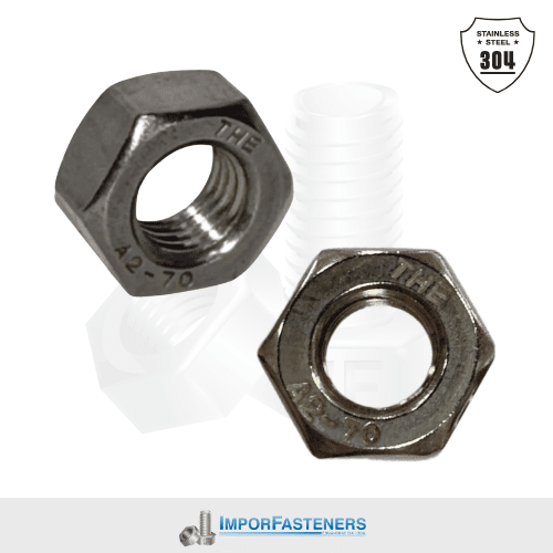 Tuerca hexagonal según norma DIN con rosca UNC, fabricada en acero inoxidable. Adecuada para aplicaciones que requieren resistencia a la corrosión, durabilidad y un acabado limpio. Diseñado para uso en exteriores, ambientes húmedos y estructuras expuestas. Ideal para industrias como la alimentaria, marina y química.