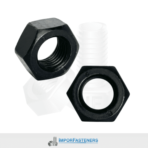 Tuerca hexagonal según norma DIN, en acero con acabado negro. Uso general en estructuras y maquinaria.